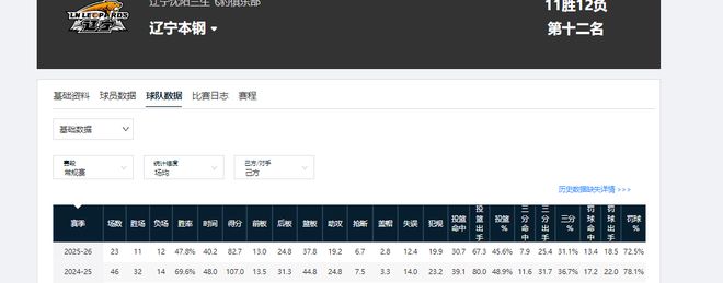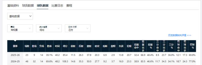 新疆男籃第一階段令人失望的原因,整體上看與遼籃有相似之處。首先是成績(jī),第一階段過(guò)后,新疆男籃以39.1%的勝率,排在積分榜第15位。