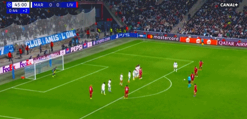 直到半場傷停補(bǔ)時(shí)階段,索博斯洛伊任意球直接破門,此球極像當(dāng)年羅納爾迪尼奧破門的經(jīng)典時(shí)刻,同樣也是門將準(zhǔn)備不足,利物浦1-0打破僵局。